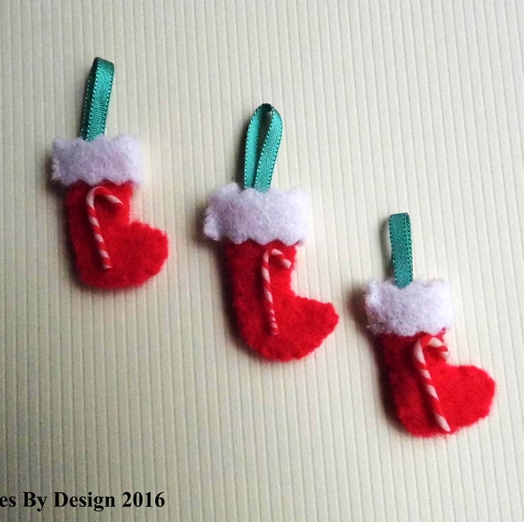 They even come supplied with a handmade polymer clay candy cane that can be popped inside the stockings.