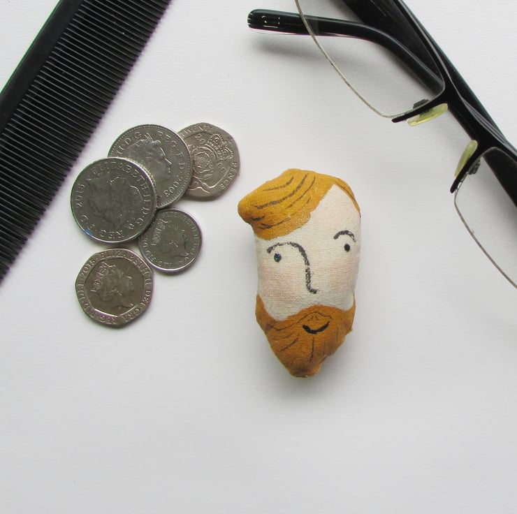 Made of Fabric with a hand painted face. Approx 2.5inches long ( 6.5cm)