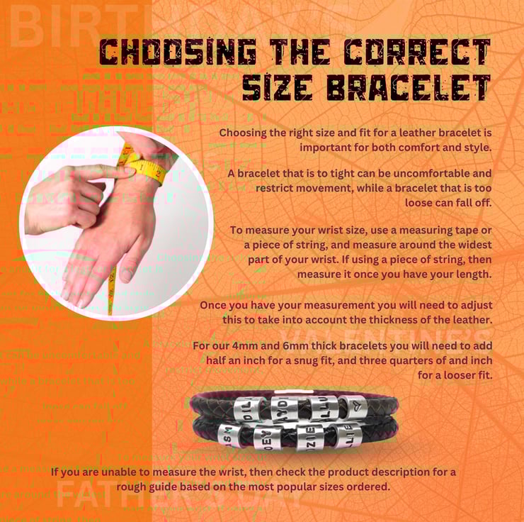 You can specify the leather colour that your bracelet is made with, as well as the bracelet length.