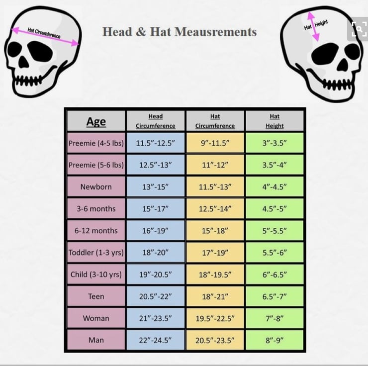 See head size chart photo for sizing guide.