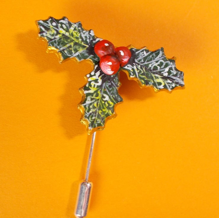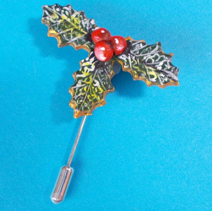 You are looking at a variation of one, of my most popular Designs- The Small HOLLY & BERRIES STICK PIN- Lapel Flower Pin.