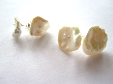 Keishi or reborn pearls with CZ crystal detail. On Silver posts they are disc pearls, undulating with gentle waves. I have added a tiny Cubic Zircona Crystal to the centre to emphasise the look of a flower. Textured & desirable.