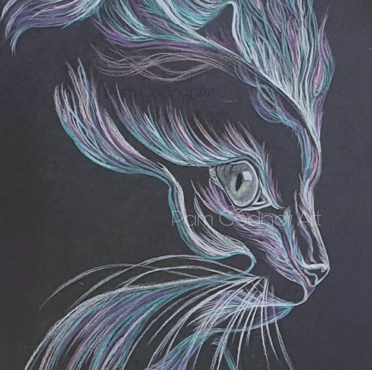 A delightful drawing created on A3 black card. I have used Derwent colouring pencils, charcoal and a Wink of Stella glitter brush pen.