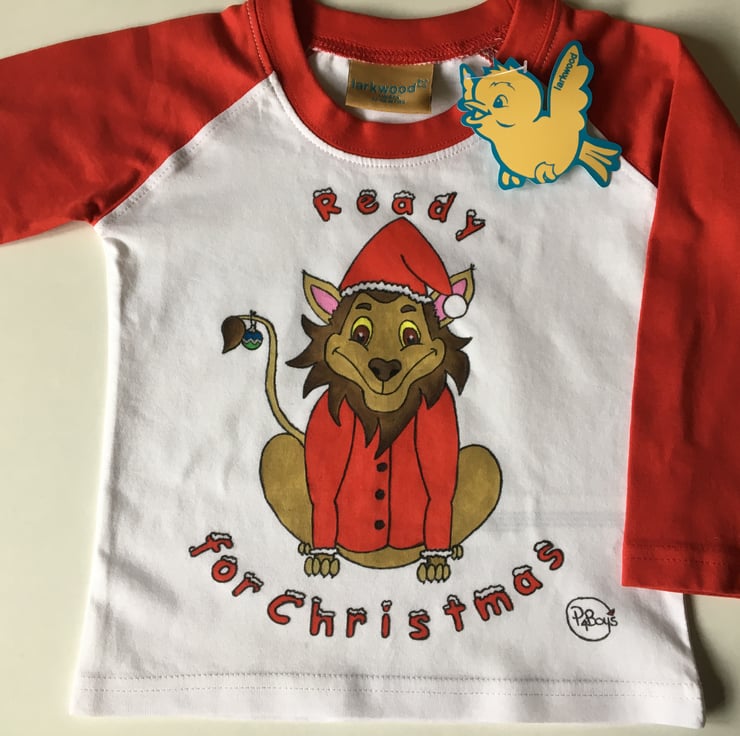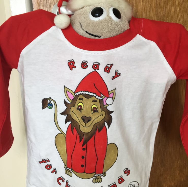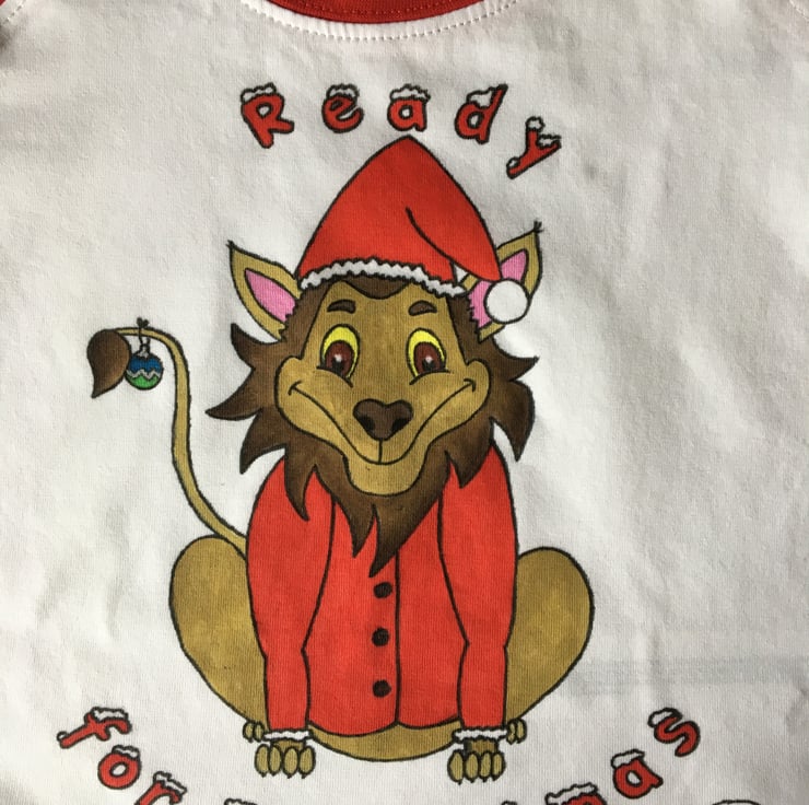 Thank you for looking at this long sleeved t-shirt with a funny Christmassy lion, designed and hand painted by me!