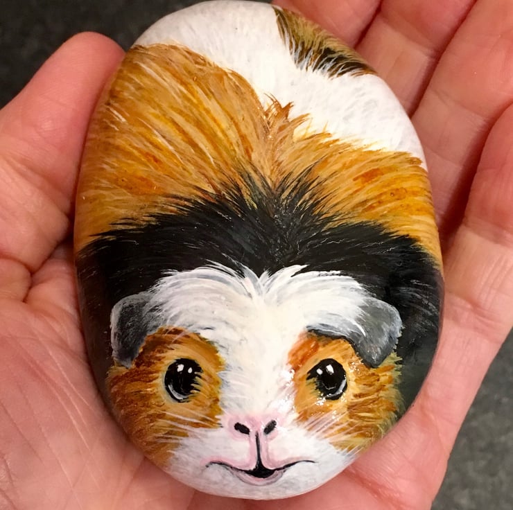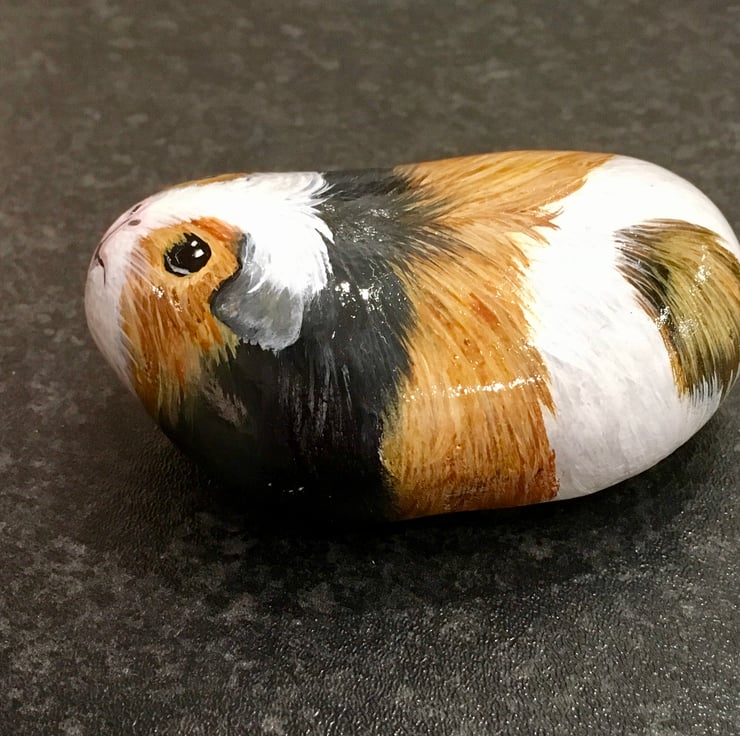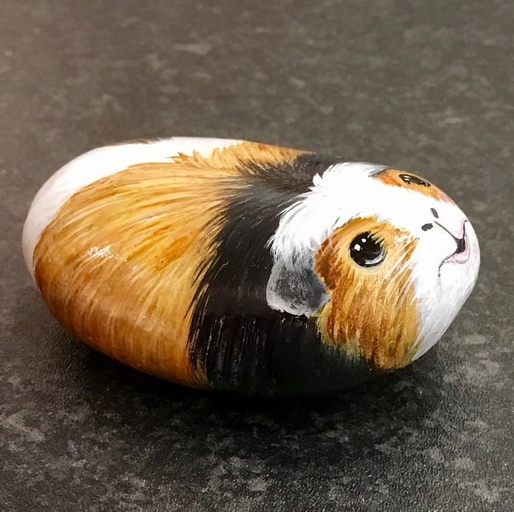 This little guinea pig from my cobblecreatures range has been hand painted by myself onto a smooth stone and glazed for a glossy protective finish
