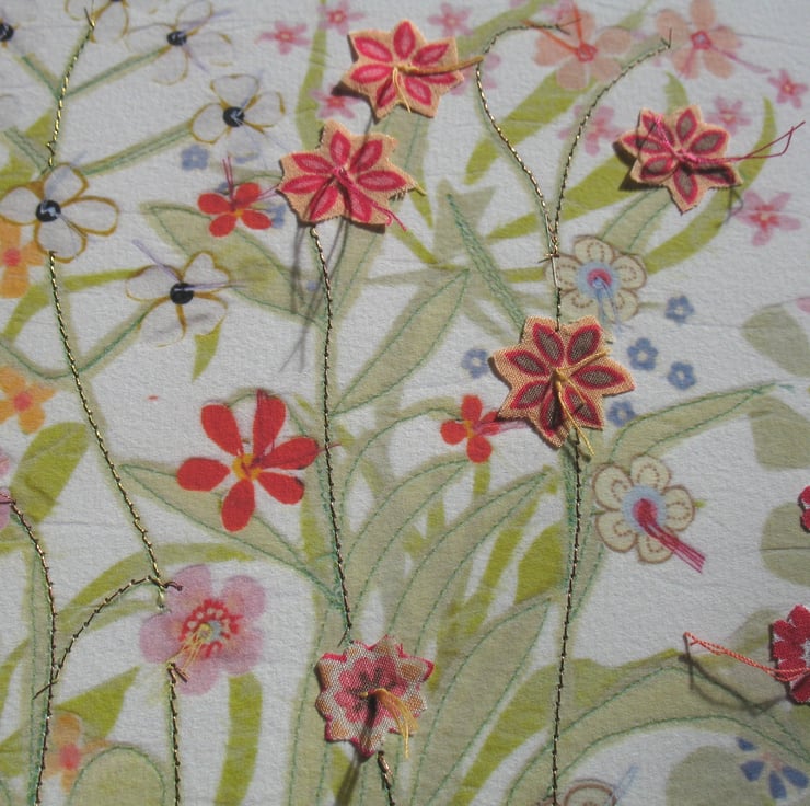 Summer Flower Meadow has lots of orange and red flowers added to the printed background, giving it a warm summery glow