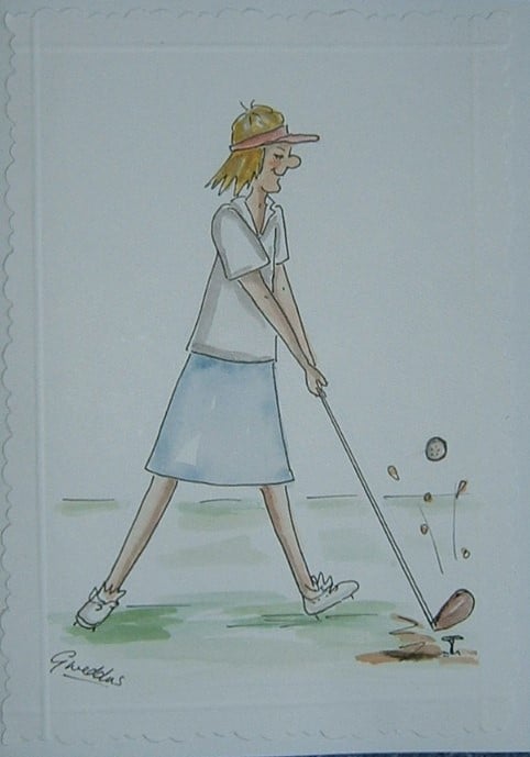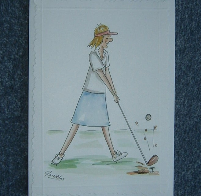 This comical lady golfer cartoon card has been hand drawn and painted by myself. It is an original and not a print.