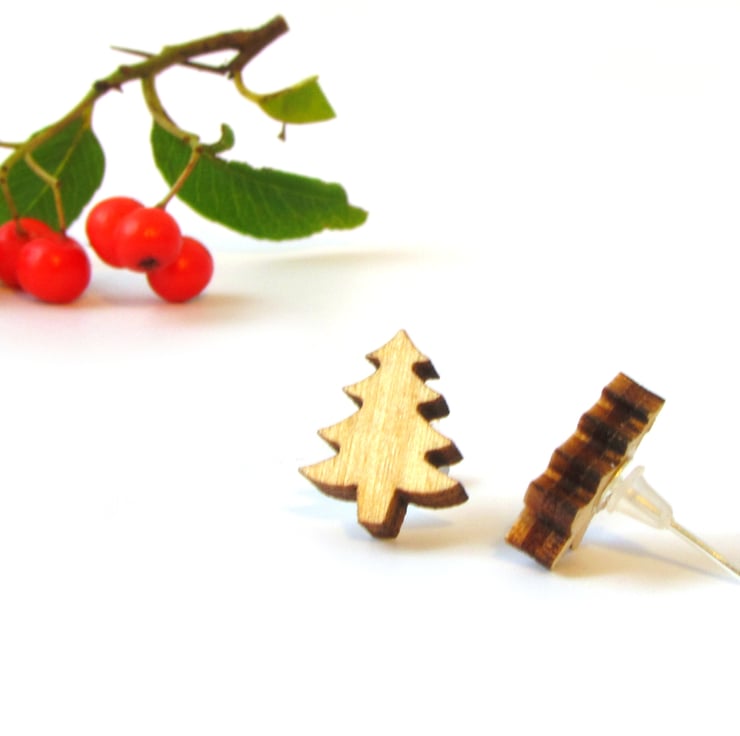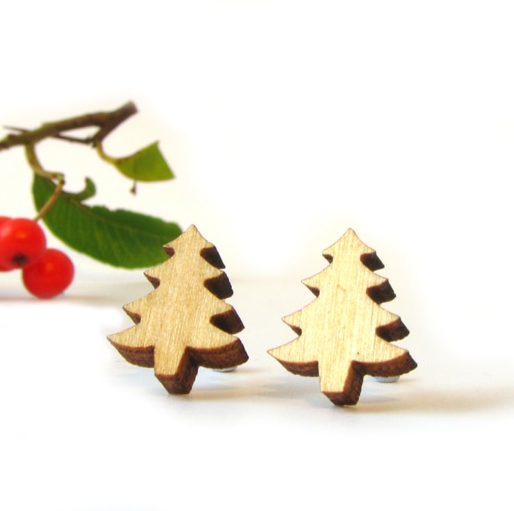 These tiny wooden tree stud earrings are inspired by long Autumnal walks, camping near woodland and forests & of course a nod to Twin Peaks.
