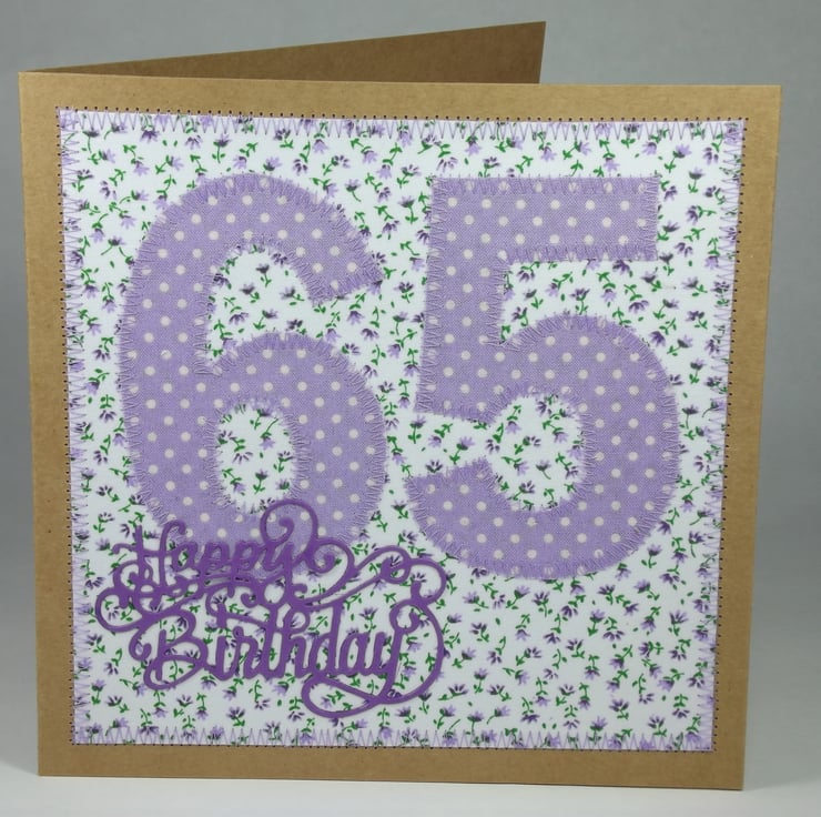 I have made the background and numbers from fabric. To finish the card I have added a handmade Happy Birthday greeting.