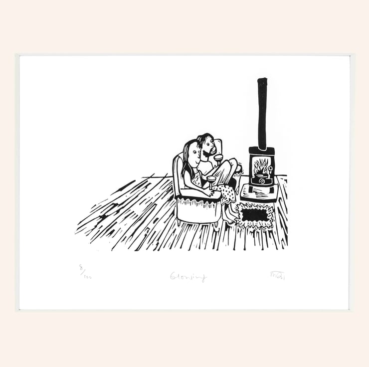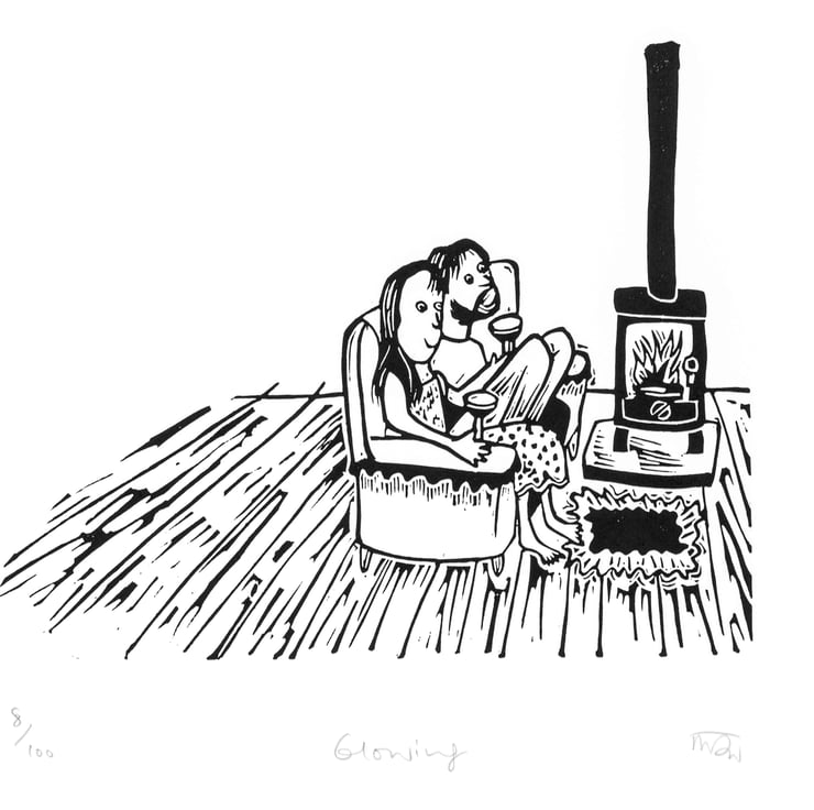 This is a hand burnished lino print in an edition of only 100. It is printed onto Somerset Satin paper and each lino print is numbered and signed.