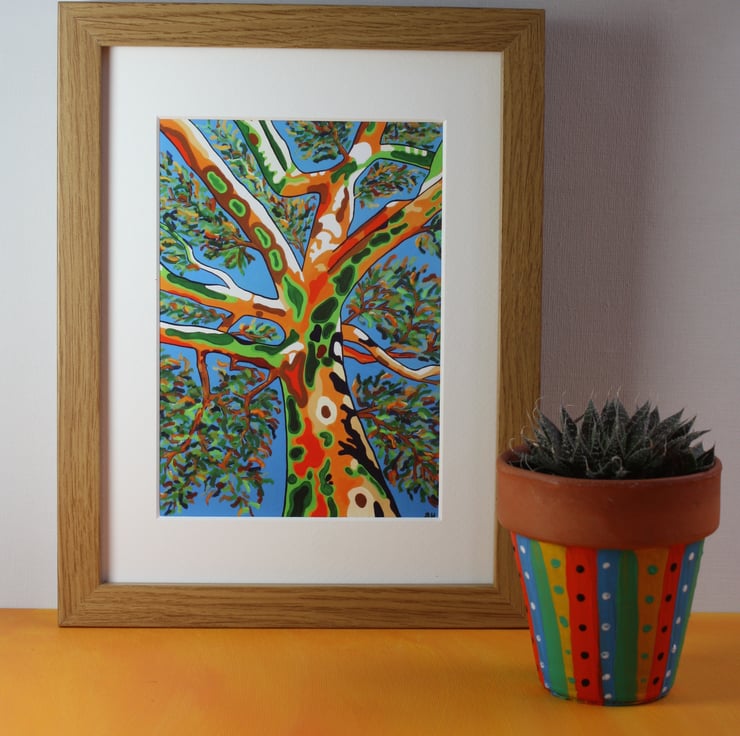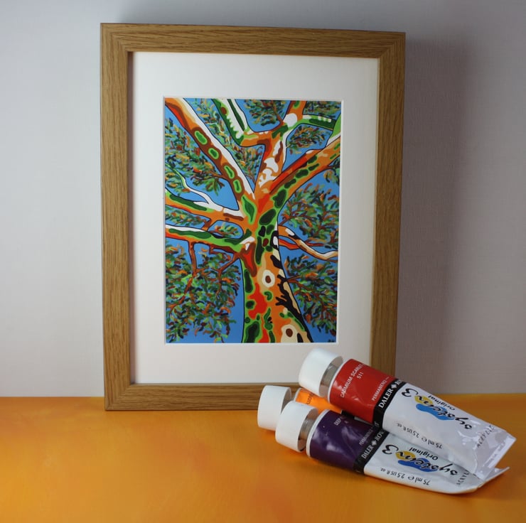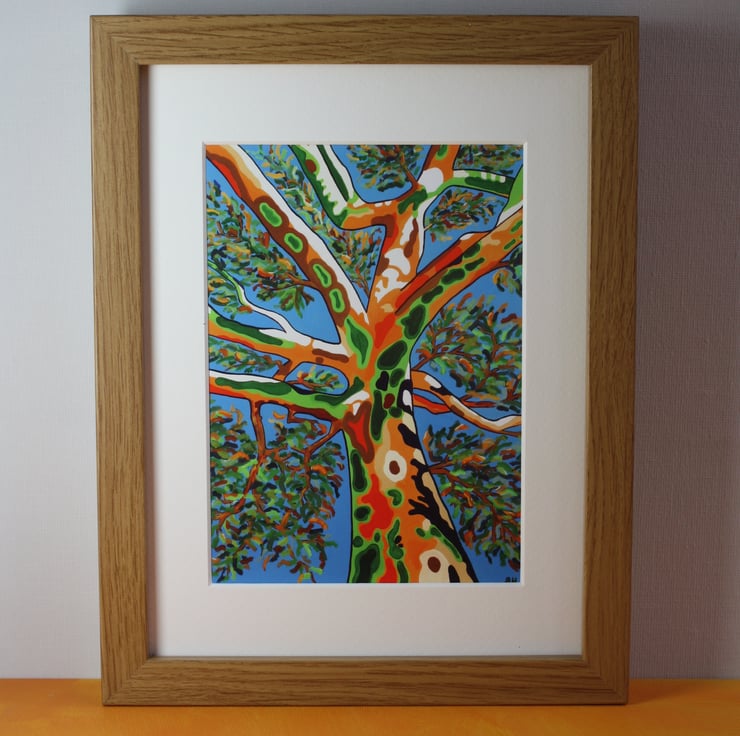 The striking, colourful design is a high resolution digital photograph of a large acrylic painting that I made called 'Ellis Island Plane Tree : The Spirit of the Tree'.