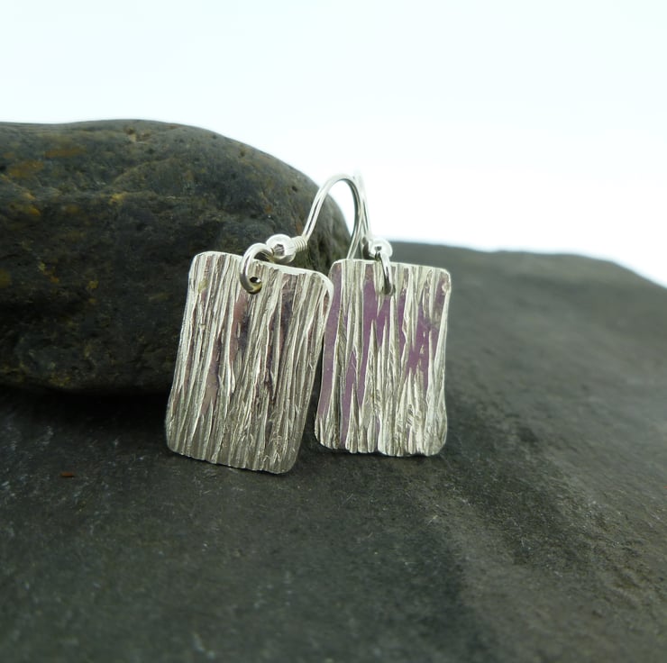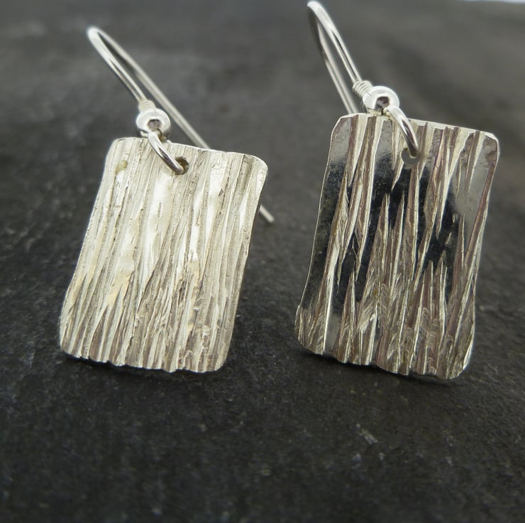 These lovely dainty earrings are made from 1mm thick sterling silver sheet and have been textured by hand. I have then attached sterling silver hook wires.
