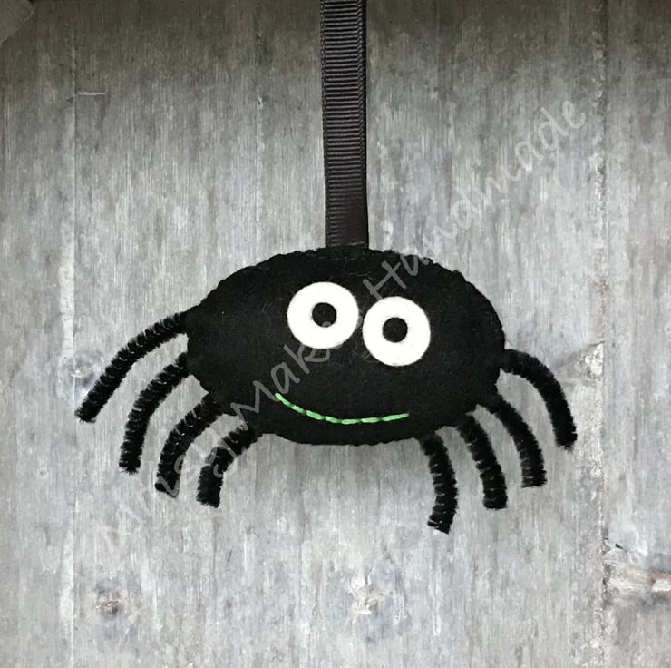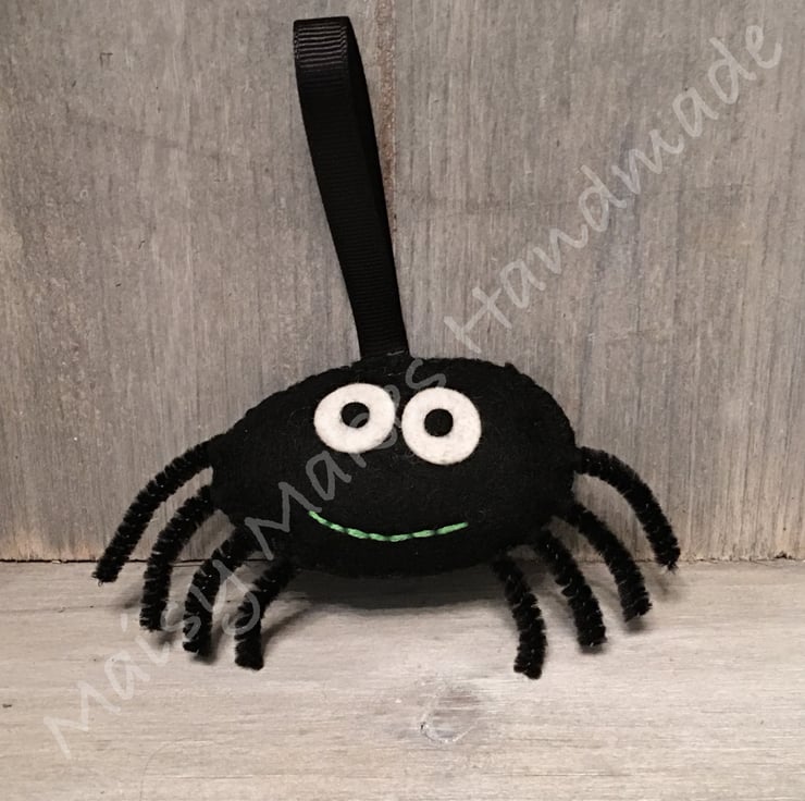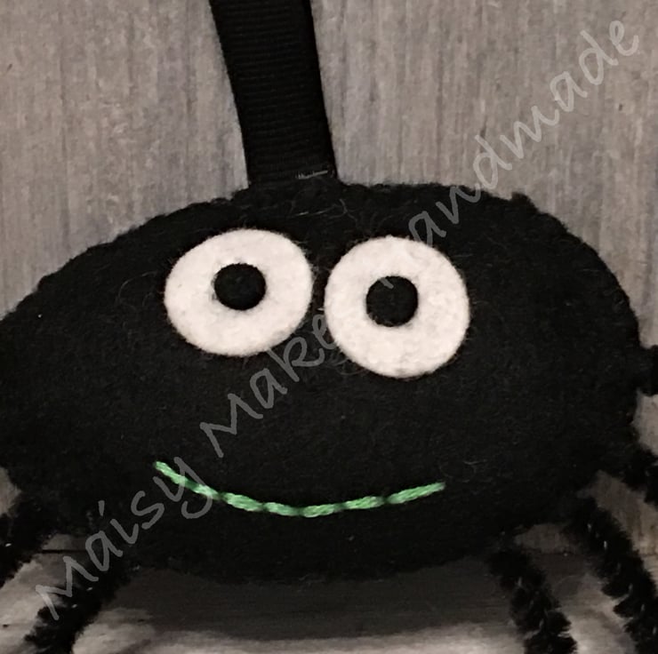 Stanley The Scary Spider Hanging Decoration has been handmade, from my original hand drawn design and is made from 100% wool felt. This item has been entirely cut by hand and all stitching and embroidery is also completed by hand.