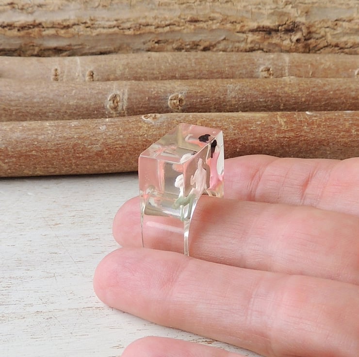 SALE: This item has been reduced in price. It was a trial piece using a new mould. The little people sit on one side of the ring, not in the middle. There are a few little air bubbles in the resin. It has been priced to take these reasons into account.