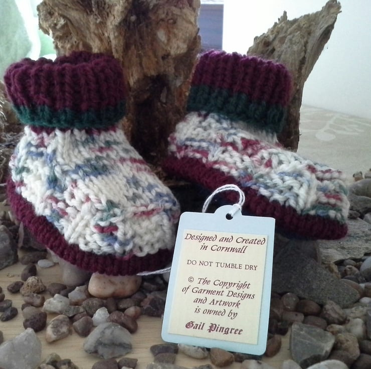 These boots are a genuine designer product. They have not been reproduced from any commercially published baby knitting patterns. Please respect the designer's profession and skills by not trying to reproduce them including the colourways and any trims used.