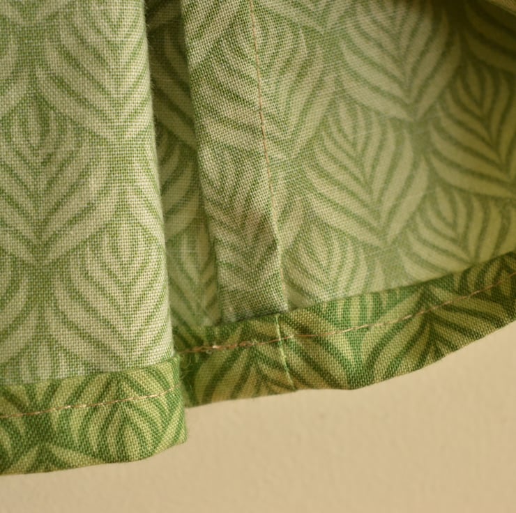 French seams to the sides, hemmed.