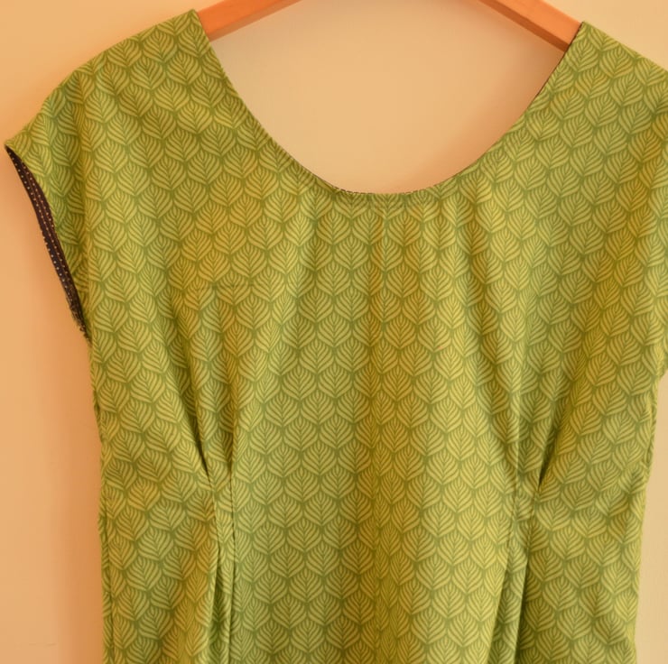 Liberty bias binding on inside shoulders (There will be some fabric fraying on the inside shoulder fabric edges. This wont affect the quality of the dress as the seams are bias bound and double stitched).