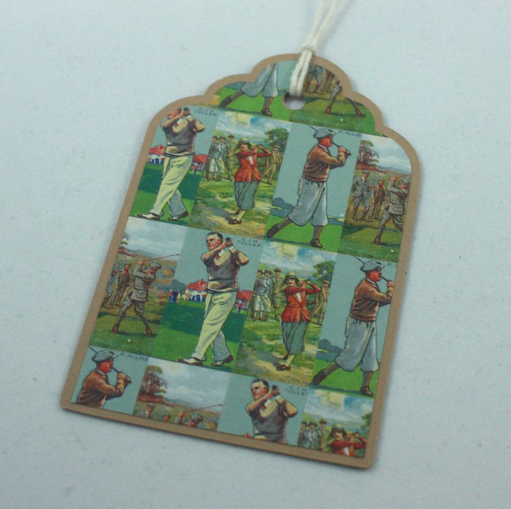The card comes with a coordinating gift tag (9cm x 6cm) made up of the vintage background paper overlaid onto coffee coloured card, with a length of white string to attach to Dad's birthday present.