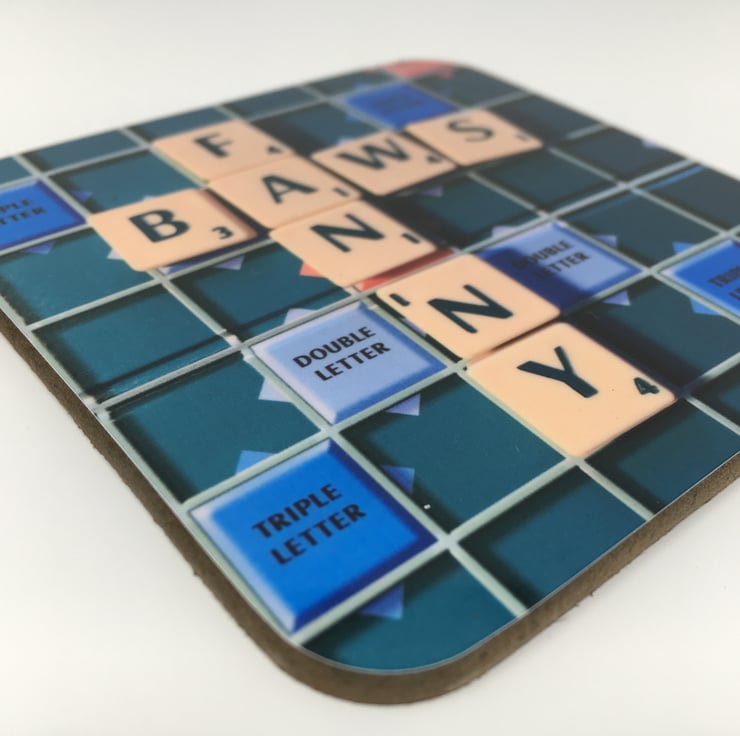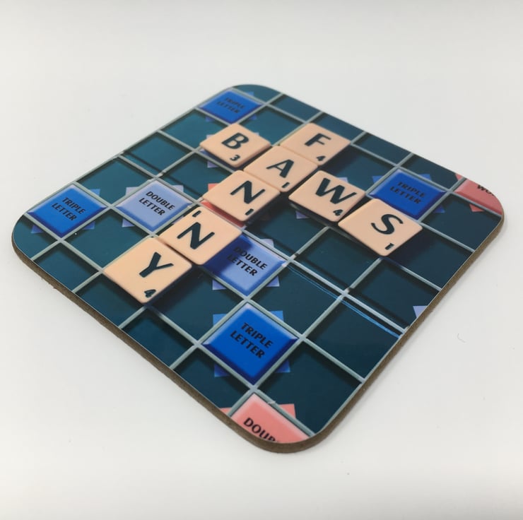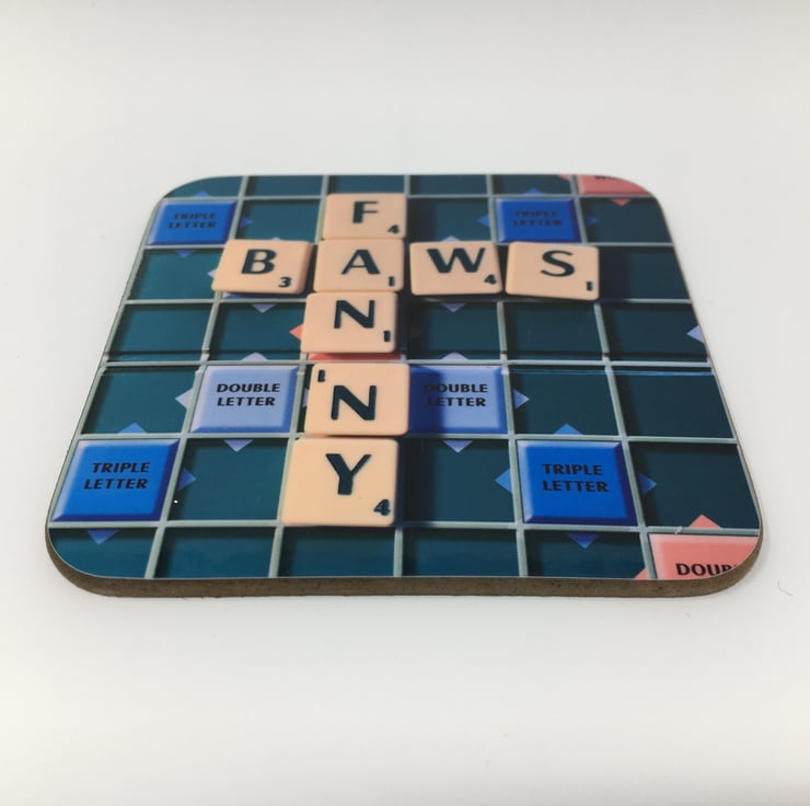 My original Fannybaws scrabble image reimagined on this super glossy coaster