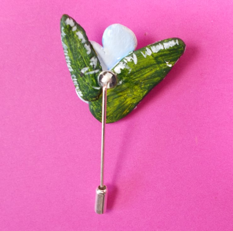 You are looking at a variation of one, of my more unusual Designs----The SINGLE FORGET-ME-NOT & LEAVES STICK PIN... Lapel Flower Brooch