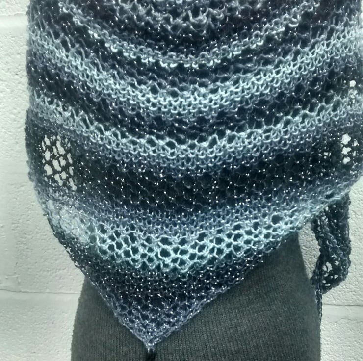 Beautifully knitted in a mix of lace and garter stitch to give drape and structure. The shawl is the same on both sides so there is no right or wrong side, just pick up, wrap and go.