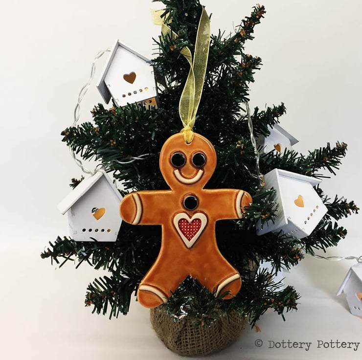 They are made from white earthenware clay, finished in a buttery brown glaze and thread with a matching organza ribbon.