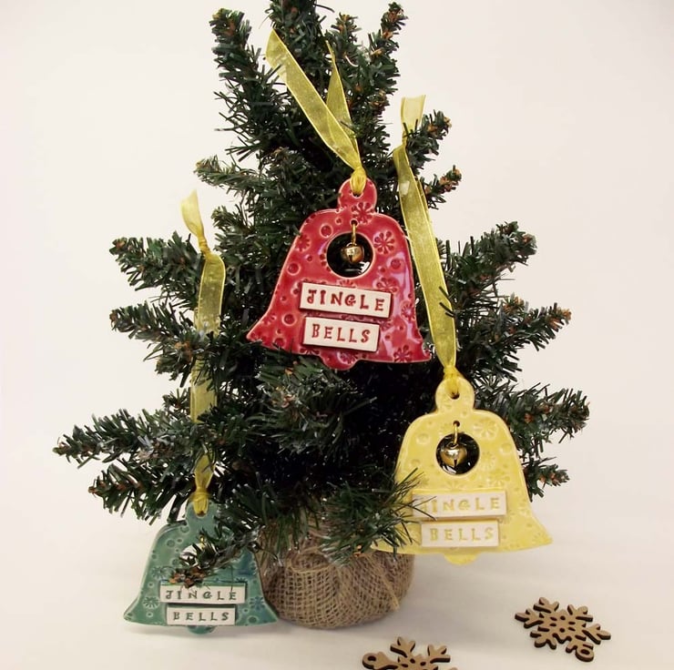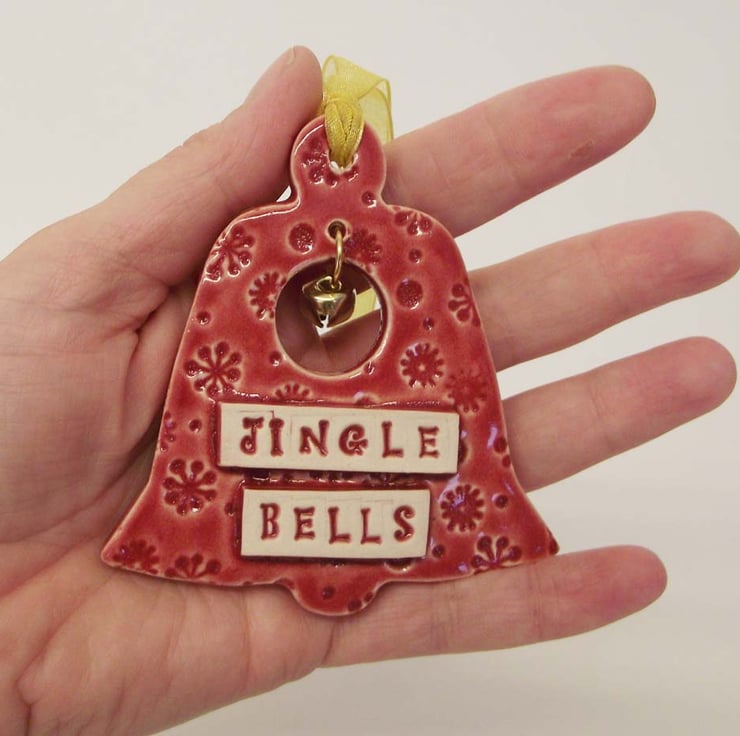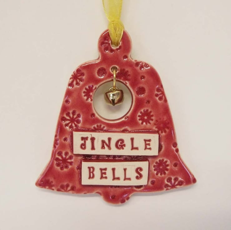 Christmas Bell - JIngle Bells Ceramic decoration with little bell inside. Red