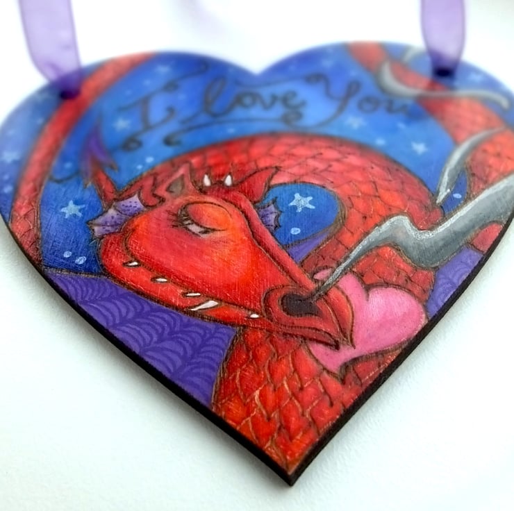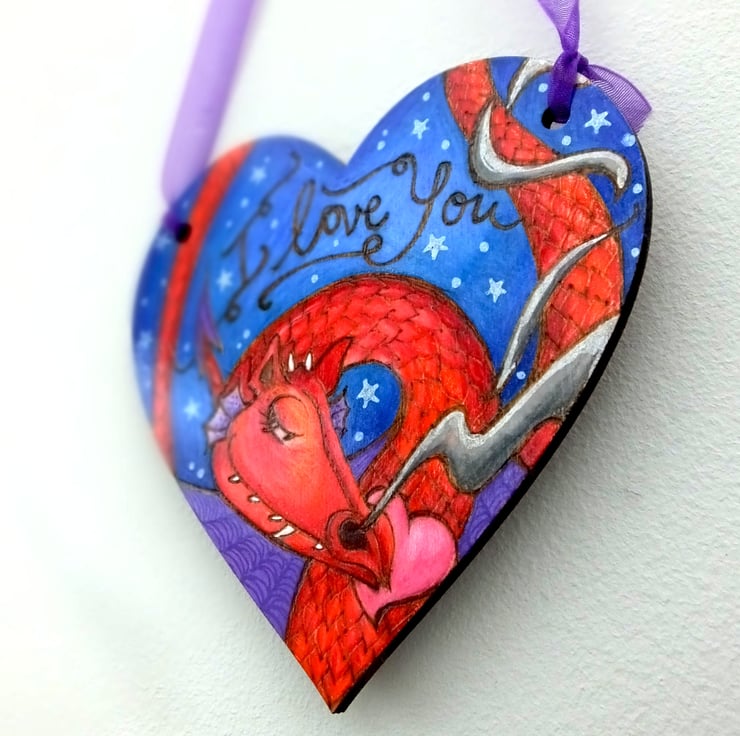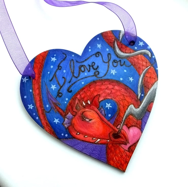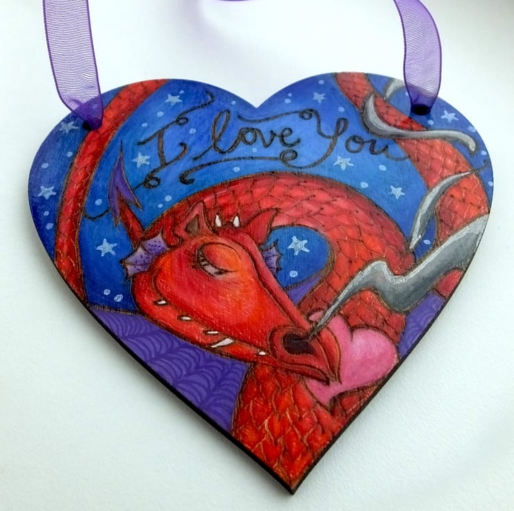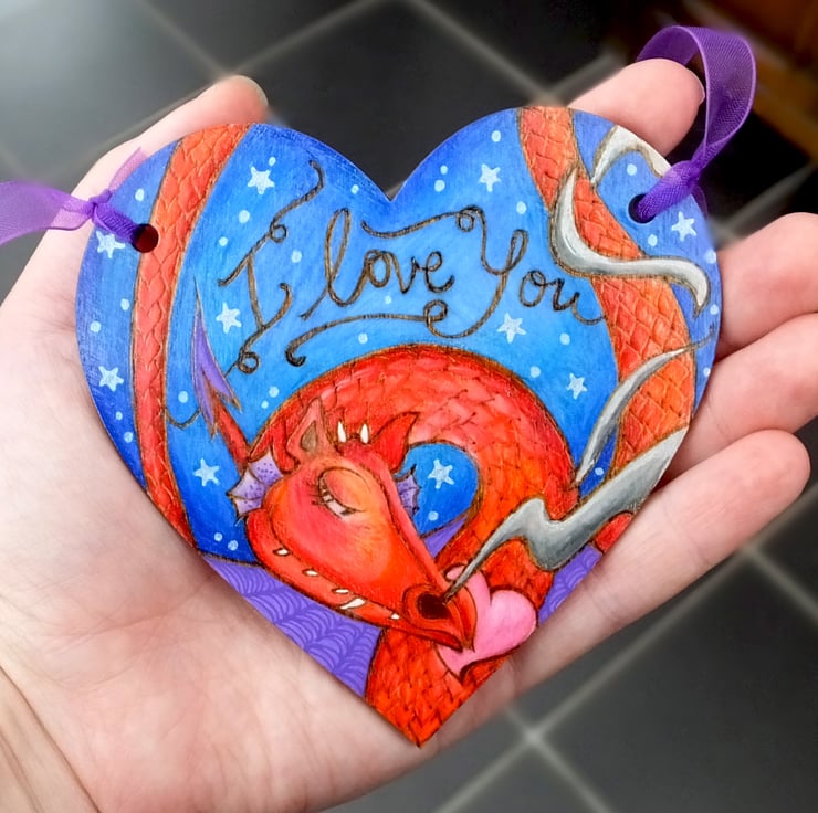 The design is my own, burned onto the birch heart using pyrography, then I've added colour using prismacolor pencils and sealed it with varnish.
