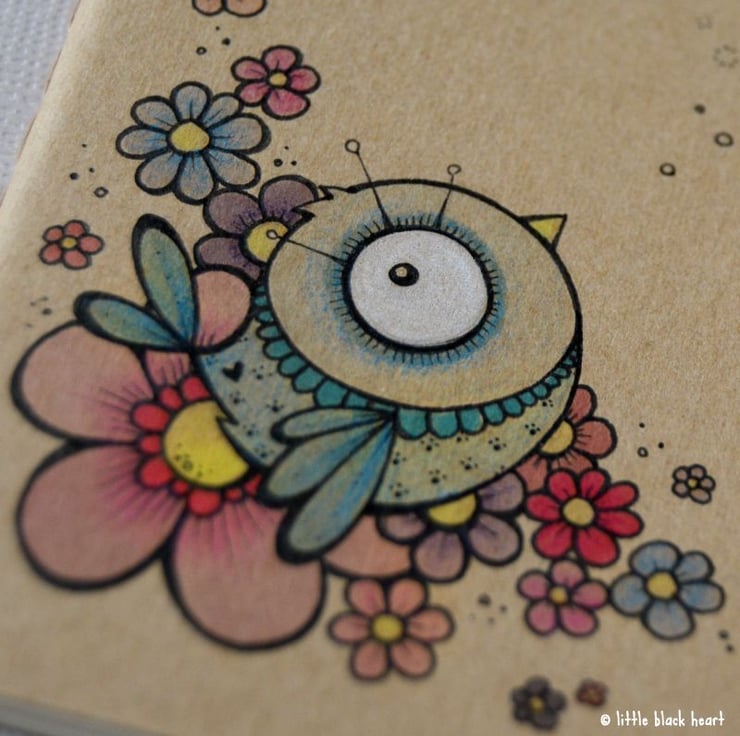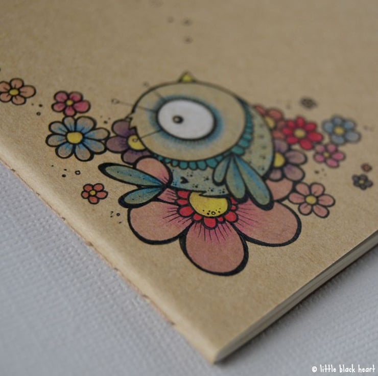 this pocket notebook features a little bluebird sitting amongst some colourful flowers.