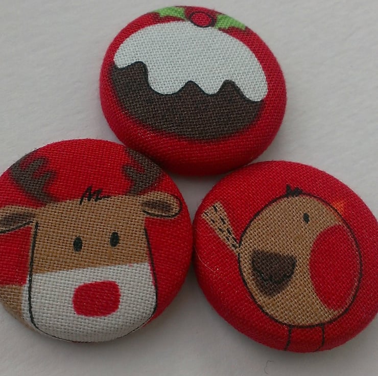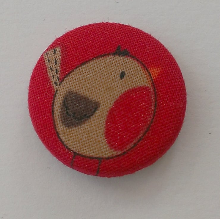 Cute little Christmas Robin fabric covered button badge. One inch in diameter - 2.54 cm with a pin fasten. These little badges look great on on bags, coats, in party bags, on hats, in stocking fillers....so many possibilities! See other Christmas badges that I have available in my shop.