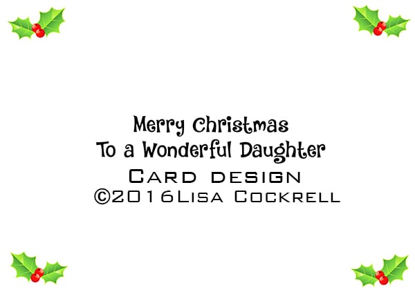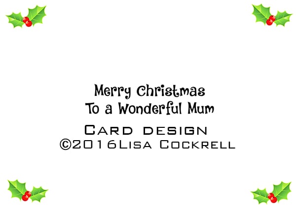 However, this card CAN BE PERSONALISED INSIDE by choosing the "Merry Christmas to a Wonderful..." message of your choice. Please let me know which of the messages you would like inside your card when you purchase it. See examples above...