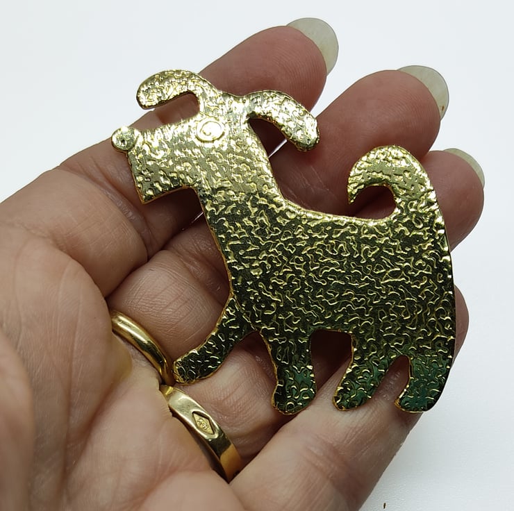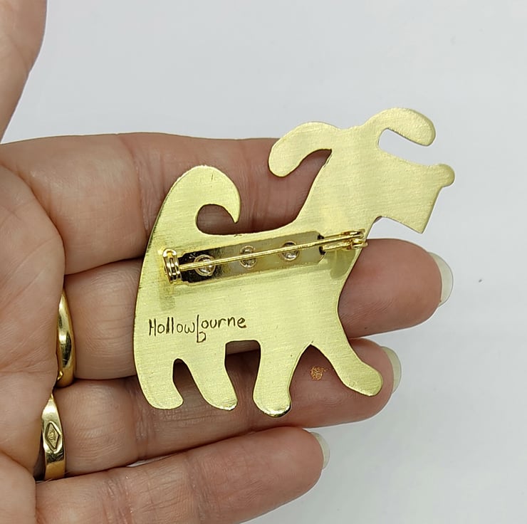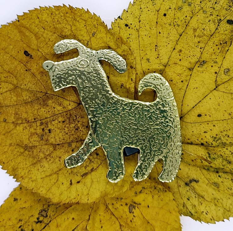 Dog brooch, slightly shaggy eager looking mutt dog. the sort of dog that looks ready to take part in an Enid Blyton adventure.....