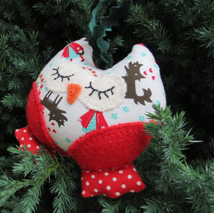 This little owl stands 10cm tall, excluding the velvet ric rac loop.