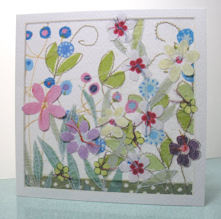 A blank greetings card, professionally printed from an original Daisy Florence Design 'Flower Garden' artwork.