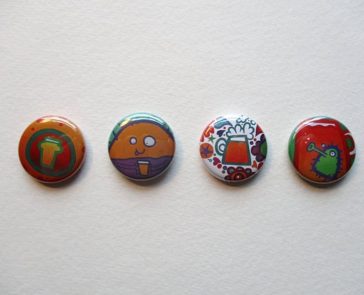 This badge set comprises 4 images taken from my Beer and Monsters paintings.