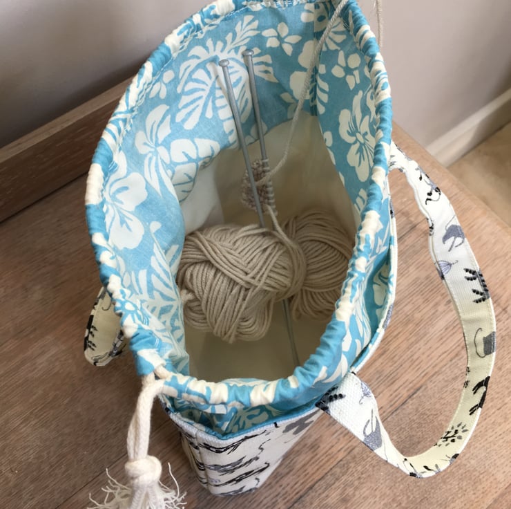 Cats galore! This would make a great bag for small knitting or crochet projects - perfect to take along to a craft group or out for the day. It also folds flat when not in use. It could also be an appealing size for little girls who like bags.