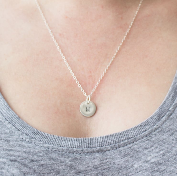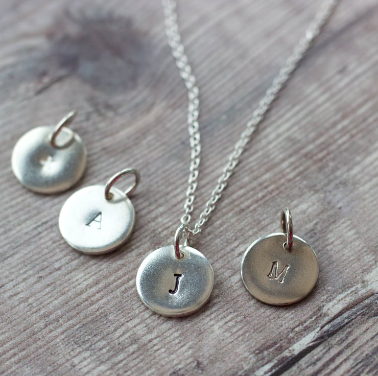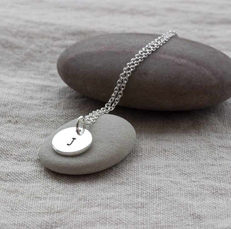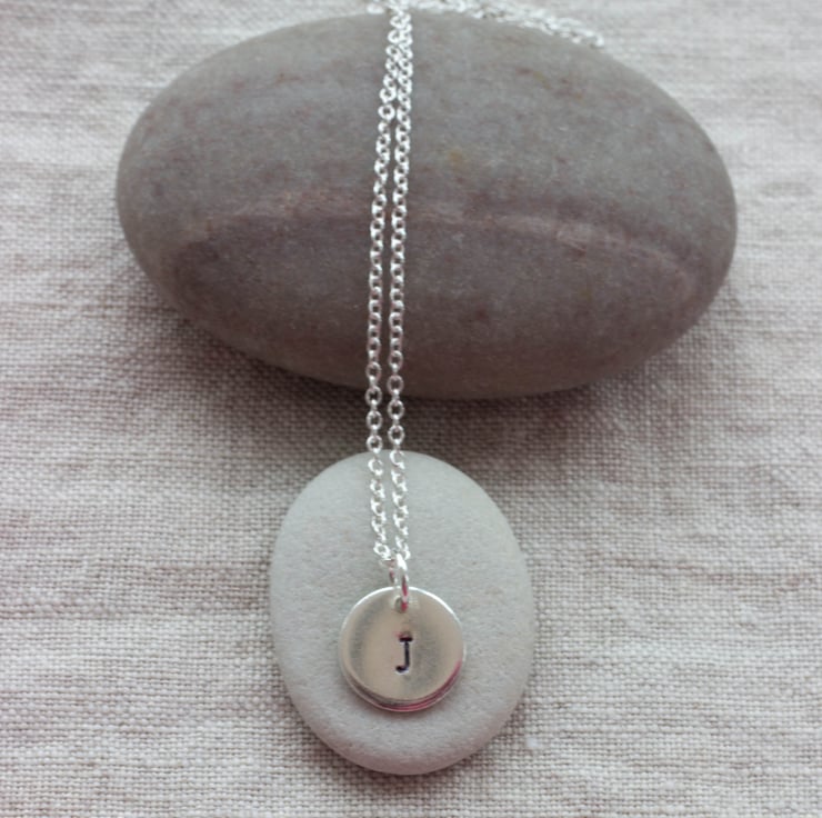 These special pendants are handmade from 1mm thick Sterling silver sheet and are handstamped with an initial of your choice.