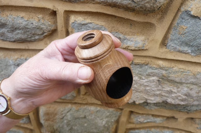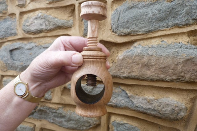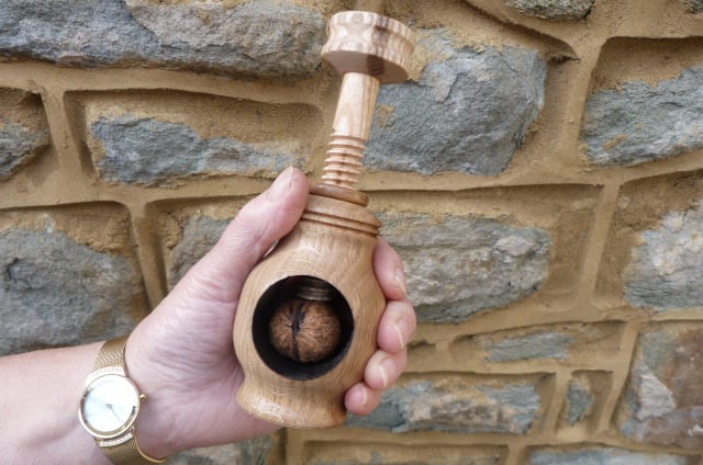 A NICE NUT CRACKER TO WATCH TELEVISION WITH, THE BODY IS OAK,TURNED WITH THE GRAIN VERTICAL, THE SCREW IS ONE PIECE OF ASH AGAIN TURNED VERTICAL, A STRONG AND USEFUL PIECE.
