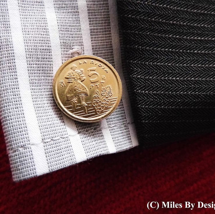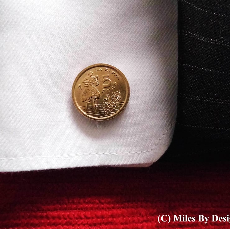The perfect gift for the gentlemen in your life is this set of genuine 1996 Spanish Peseta coin cufflinks.