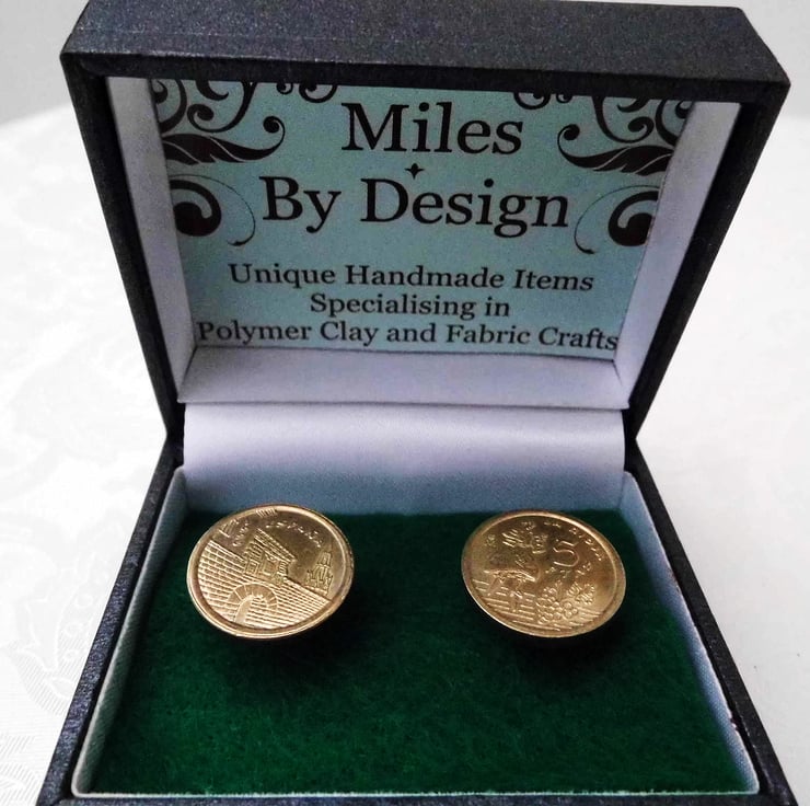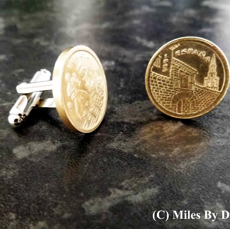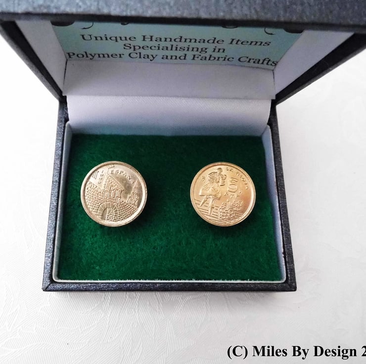 Cleaned and affixed securely to cufflink backs the Peseta coins are in incredible condition for something that is 20 years old.