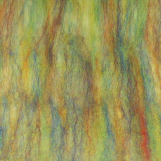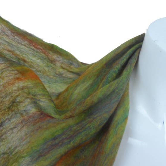 Nuno felting is a process which causes the woollen fibres to migrate through the silk and bind with it to create a new fabric.