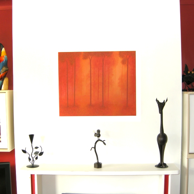The forest artwork is painted in acrylics on a 50cm x 60cm (19.7" x 23.6") canvas. The image carries on over the edges of the canvas so framing is not necessary and the canvas has a string on the back so it is ready to hang.