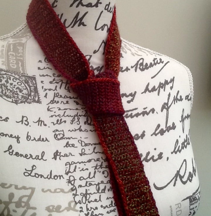 Crocheted in continuous lines, without seams or joins, then edge crocheted to frame the tie, giving smooth side lines along the length!