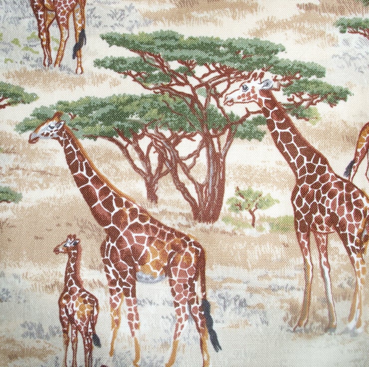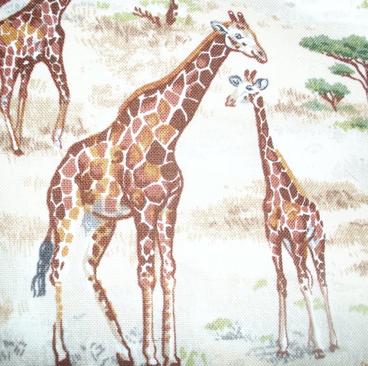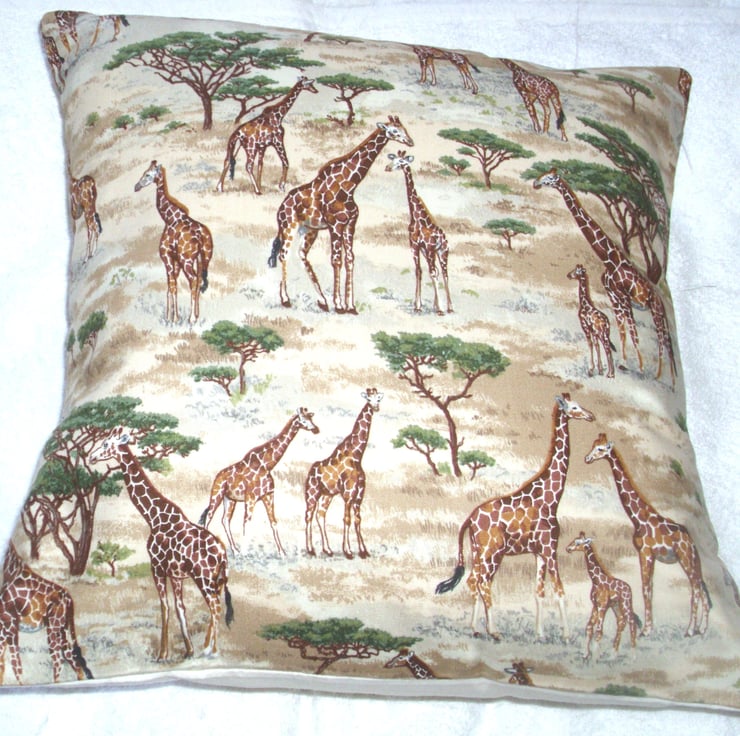 On Safari Giraffes and young on grassy plain cushion. would look good in any lounge, sitting room, study or office on any settee or armchair or in a conservatory or summer house or on a bed.