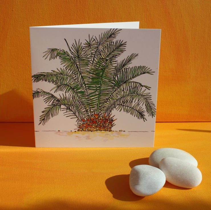 This A6 greetings card features my pen and watercolour sketch of a lovely palm growing in the garden of a villa in Crete.