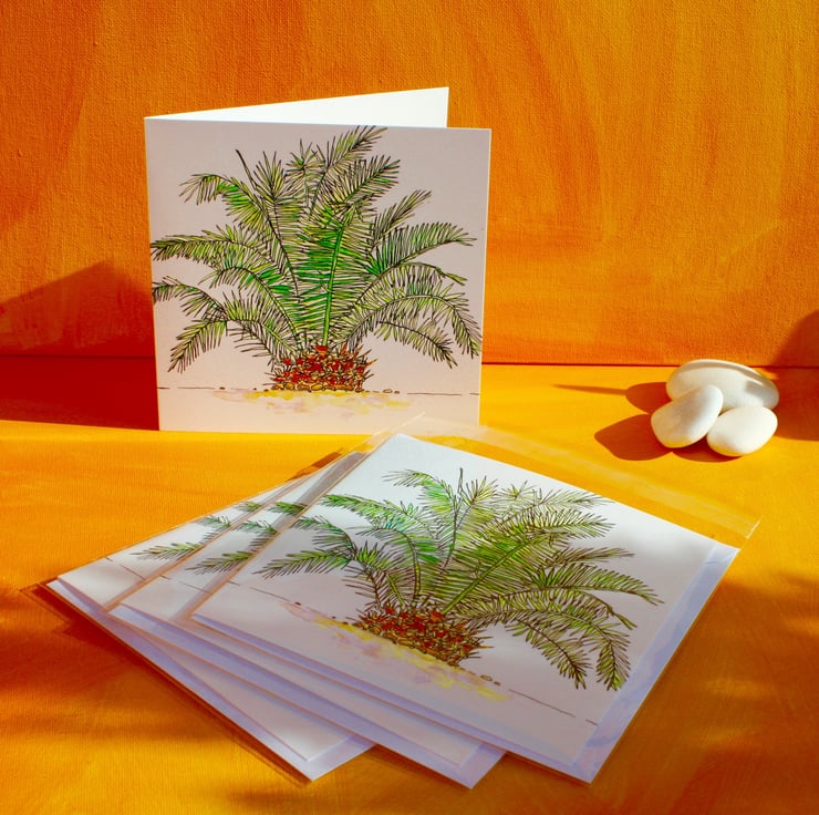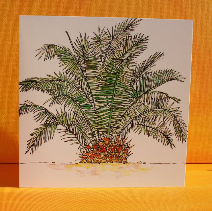 This A6 greetings card features my pen and watercolour sketch of a lovely palm growing in the garden of a villa in Crete.