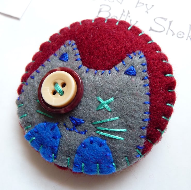 Clip Art Inspired Cat Design Handmade Felt Brooch