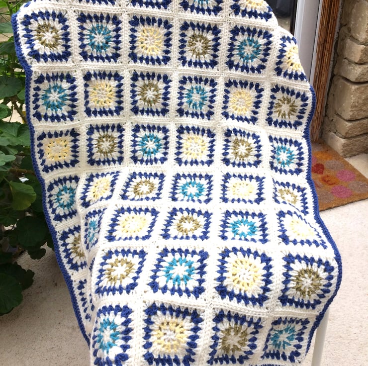 Lonsdale and Sirdar acrylic/wool mix crochet Afghan cot blanket.
