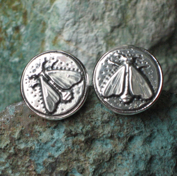 Cufflinks, bee design, handcrafted in silver pewter. These cufflinks have been made from shiny modern pewter. The bee design has been raised in sheet pewter, oxidised for depth of colour, and mounted onto cufflinks. Cufflinks make a great gift for a man for a special occasion and these cufflinks would be perfect for a man who likes gardening, wildlife or bees in particular!