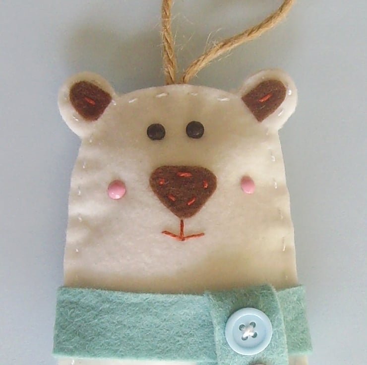 Make your own Pip polar bear felt decoration.